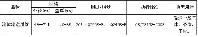 ·流體輸送用管: 用作輸送流體的管輸送石油、天然氣、煤氣、水及某些固體物料的管道等。 |